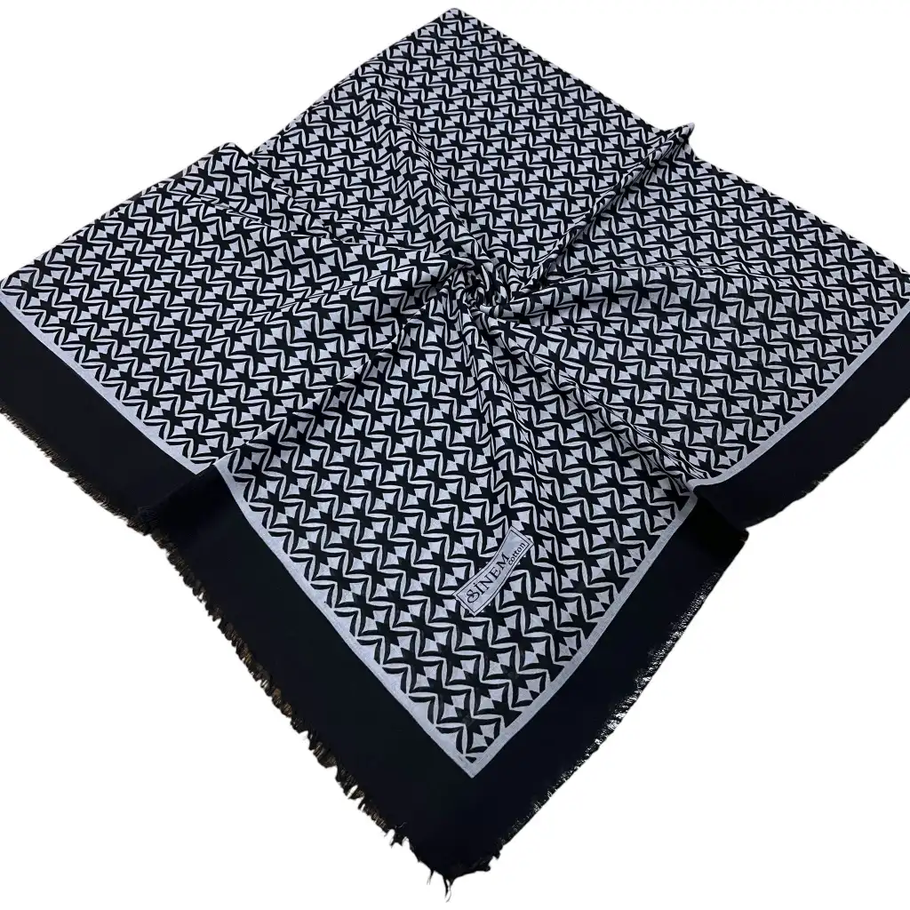 Sinem Dimi Pamuk Eşarp -(Siyah-Gri Serisi) -(FE542-12)