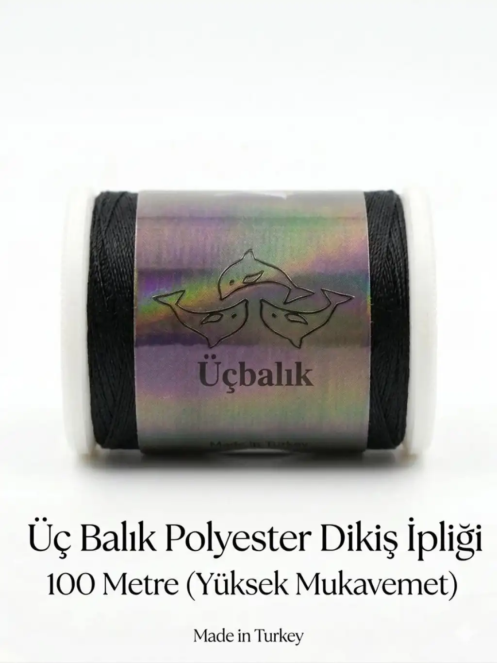 • Üçbalıklı merserize dikiş ipi kutu içerisinde 1 adet, %100 polyester ipliğinden üretilmiştir. Parlak, dayanıklı ve kaliteli yapısıyla elde ve makinede dikiş için idealdir.